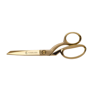 These lovely rose-gold plated premium fabric shears are sidebents, an offset design which allows the cutting blade to run flat on a surface to anchor a smoother cut. Thomas Wilkinson developed the modern style of sidebents used in tailoring and dressmaking. Whiteley took that firm over in 1875 and still uses the name for these and other premium scissors.